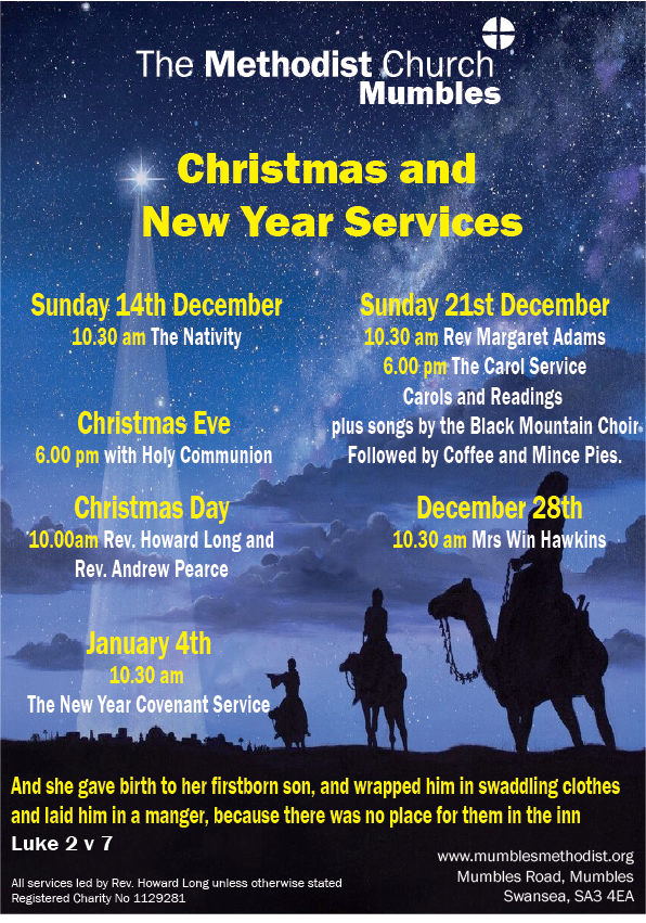 Sunday 21 December 10.30a.m Morning Worship and 6.00p.m. Church Carol Service with the Black Mountain Choir